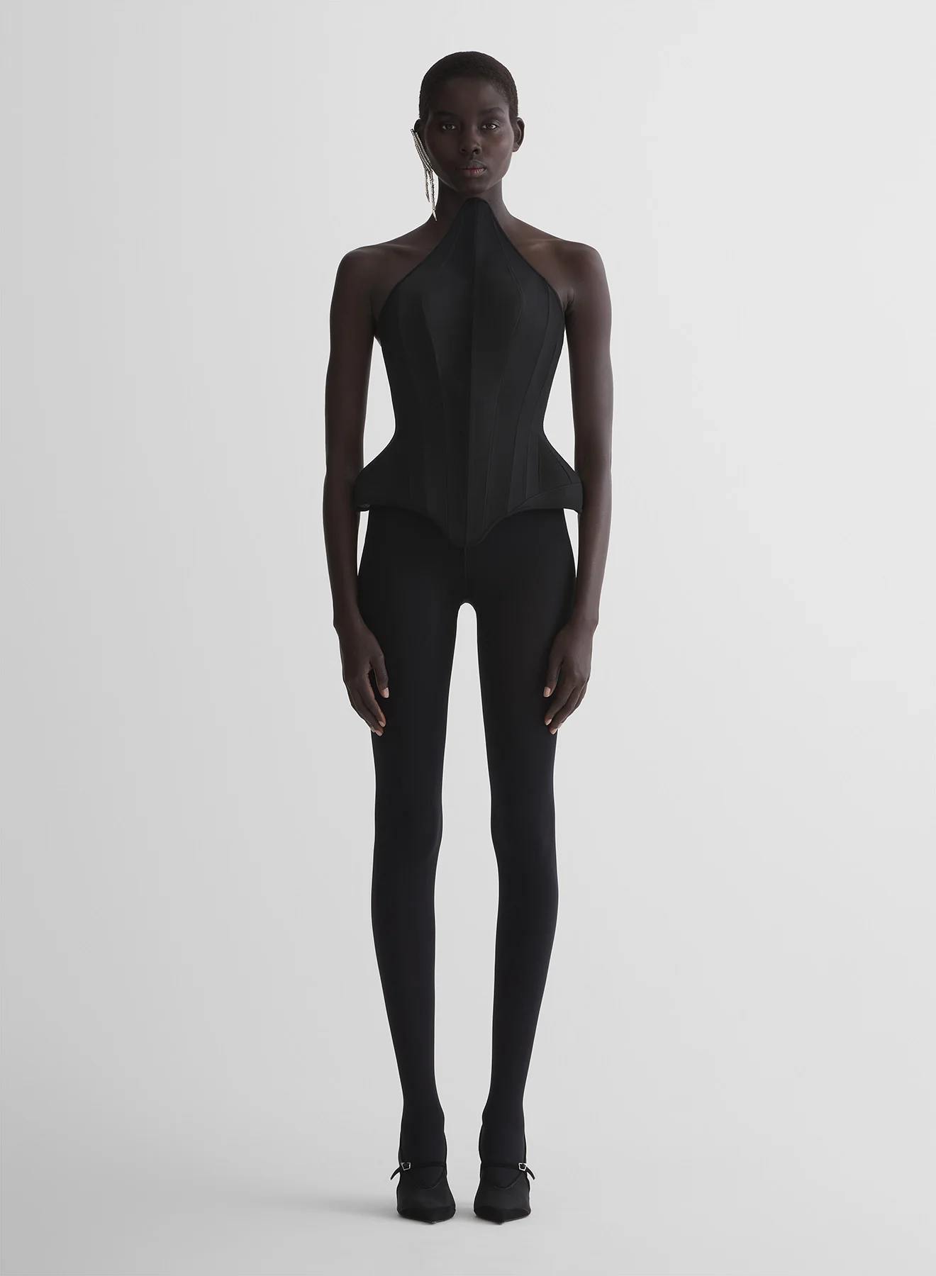 - Hourglass waist with stitched boning