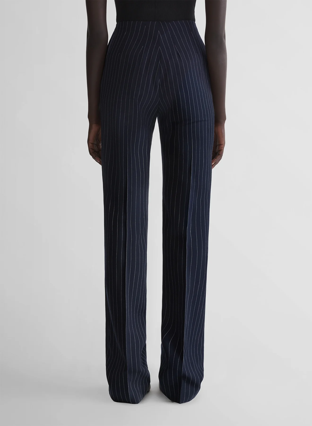 - Straight tailored pants in pinstripe wool